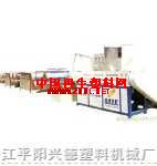 本机利用聚丙烯、聚乙烯为原料,经加热、挤出、剖丝、拉伸成扁丝经收卷机收卷后供圆织机编织。